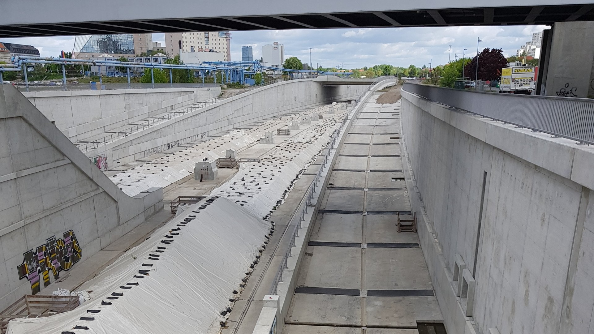 Rampe Süd in Trogbauweise, Bau-km 1+005 bis 1+145