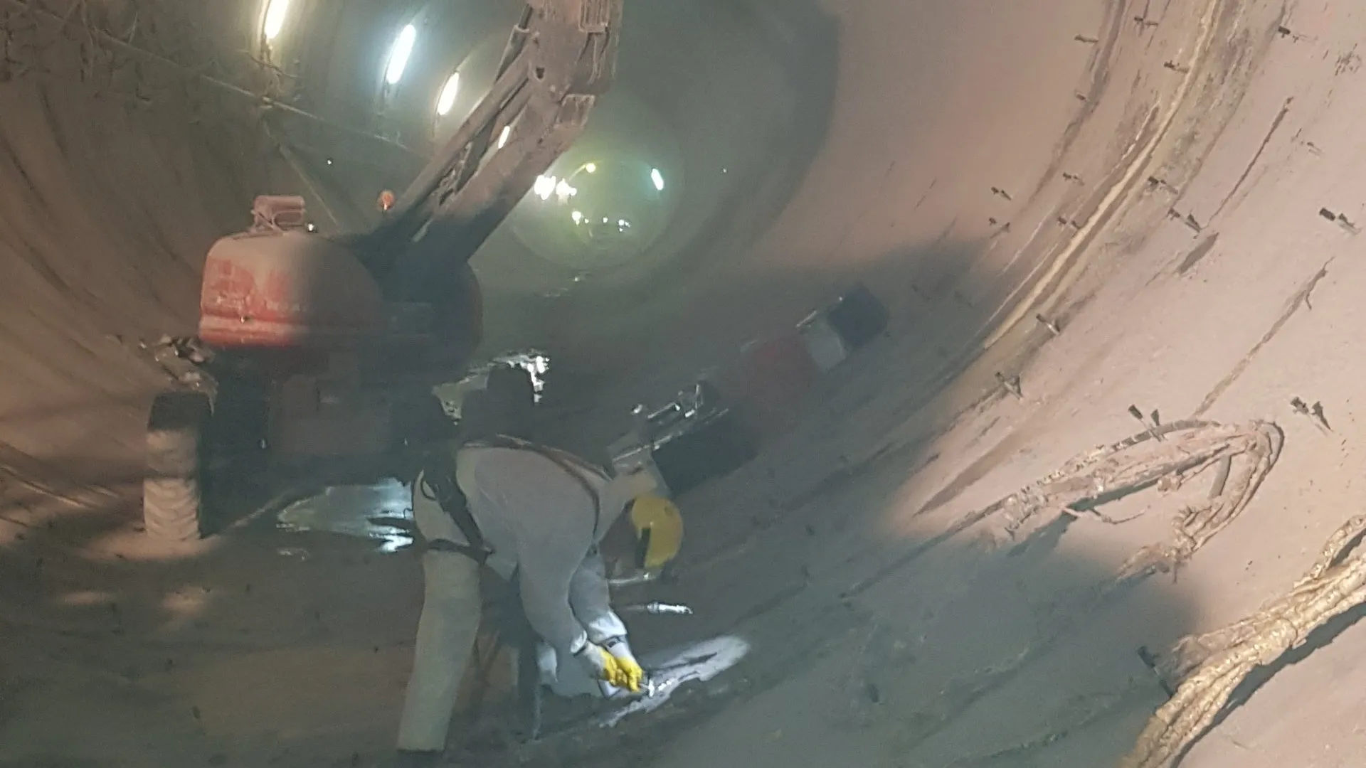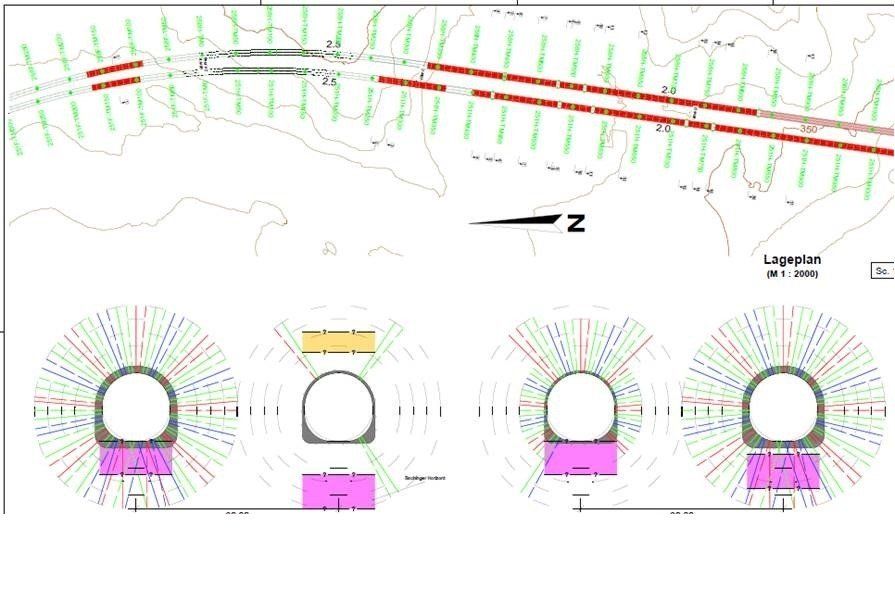Erkundungen und Baugrundinjektionen der Auslaugungsfront mit Kunstharz im Rahmen der bergmännischen Arbeiten an den eingleisigen Hauptröhren und Querschläge, Verbindungstunnel