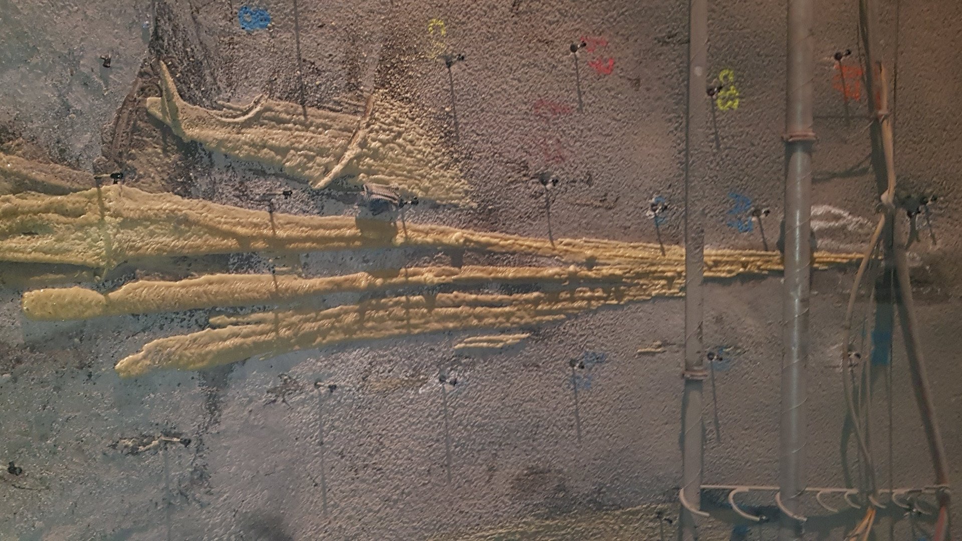 Erkundungen und Baugrundinjektionen der Auslaugungsfront mit Kunstharz im Rahmen der bergmännischen Arbeiten an den eingleisigen Hauptröhren und Querschläge, Verbindungstunnel